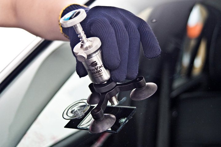 Mit KS AUTOGLAS Technologie wird eine Scheibe repariert